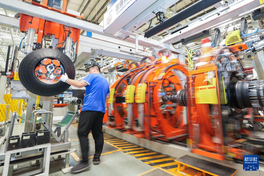 9月3日,在位于長春汽車經(jīng)濟技術(shù)開發(fā)區(qū)的吉林玲瓏輪胎有限公司生產(chǎn)車間內(nèi),工人使用成型機加工輪胎產(chǎn)品。