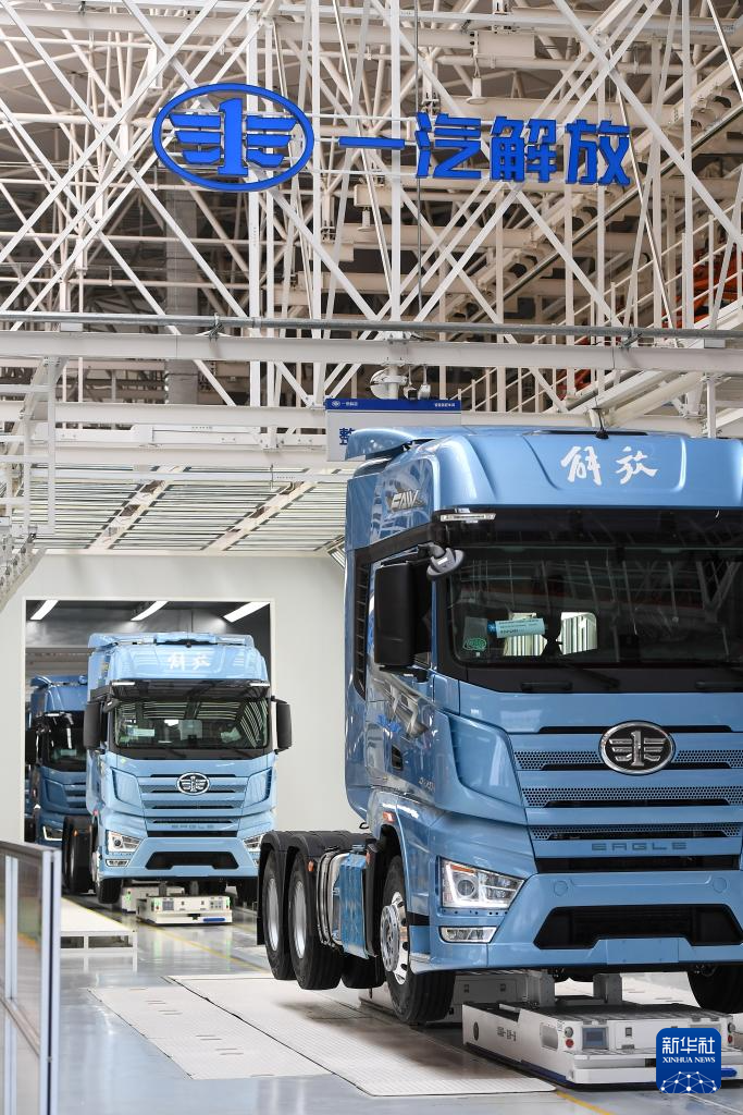 8月9日,在位于吉林長春的一汽解放汽車有限公司J7智能工廠內(nèi),AGV搬運機器人搬運車輛行進在生產(chǎn)線上。