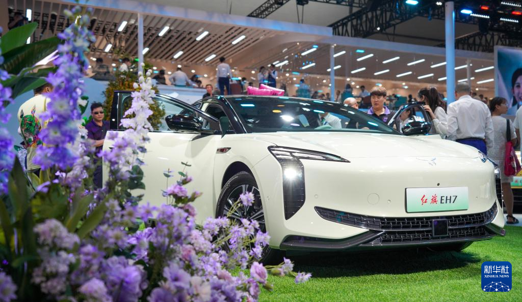 7月13日,觀眾在第21屆長春國際汽車博覽會的紅旗品牌展區(qū)參觀EH7車型。