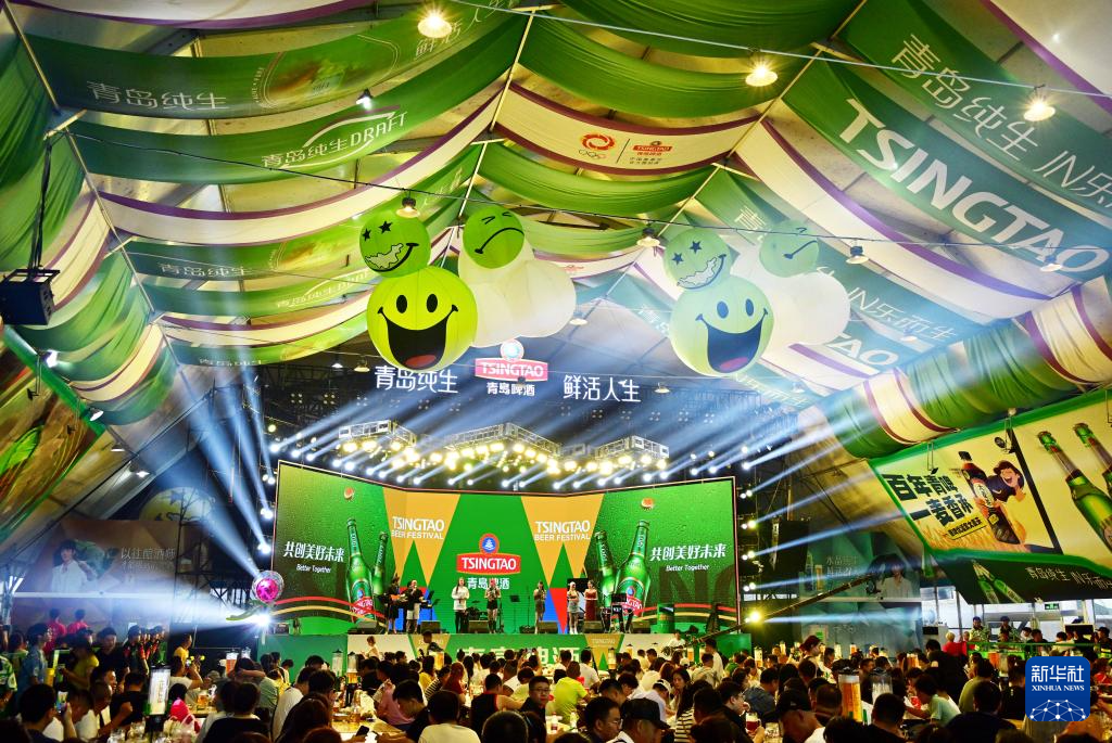 人們?cè)诘?4屆青島國(guó)際啤酒節(jié)青島西海岸新區(qū)金沙灘啤酒城內(nèi)消費(fèi)(7月19日攝)。