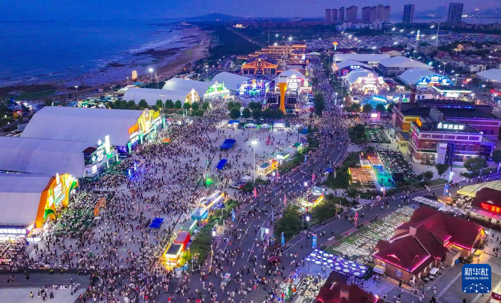 第34屆青島國(guó)際啤酒節(jié)在青島西海岸新區(qū)金沙灘啤酒城舉行(7月19日攝,無人機(jī)照片)。