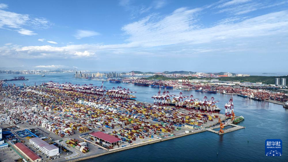 繁忙的青島前灣港(8月6日攝,無人機(jī)照片)。