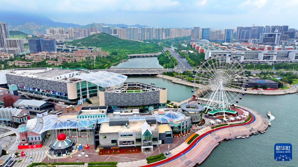 這是青島西海岸新區(qū)“海上嘉年華”市民購(gòu)物休閑綜合體(8月14日攝,無人機(jī)照片)。