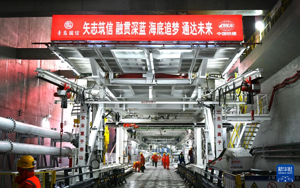 青島膠州灣第二海底隧道施工現(xiàn)場(chǎng)(1月23日攝)。