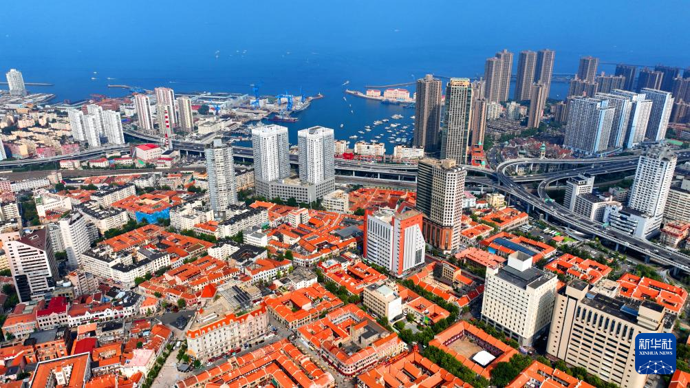 鳥瞰青島老城區(qū)一角(8月17日攝,無人機(jī)照片)。持續(xù)“城市更新”讓青島歷史文化街區(qū)煥發(fā)生機(jī)。