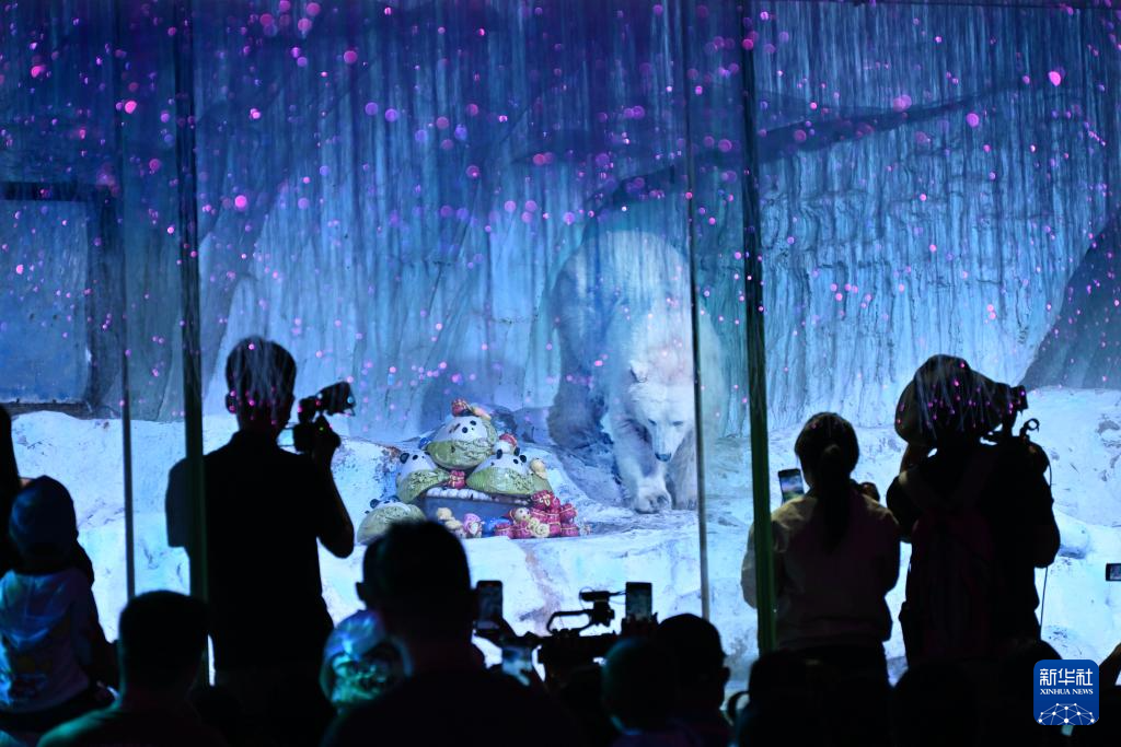人們?cè)谇鄭u極地海洋公園游玩(6月4日攝)。