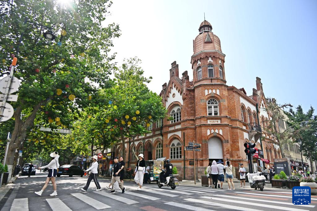 人們?cè)谇鄭u市南區(qū)歷史文化街區(qū)游玩(8月17日攝)。