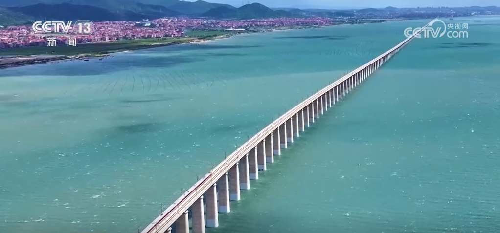 這是我國(guó)首條設(shè)計(jì)時(shí)速350公里的跨海高鐵——福廈高鐵湄洲灣跨海大橋。碧波之上,大橋氣勢(shì)恢宏,連接兩岸。在跨海大橋上行車,受海上風(fēng)力影響很大,通過(guò)這樣的路段通常需要減速慢行。但福廈高鐵實(shí)現(xiàn)了“跨海過(guò)橋不減速”,在不設(shè)風(fēng)屏障等防風(fēng)措施下,列車可在8級(jí)大風(fēng)下以時(shí)速350公里速度行駛。國(guó)慶假期,福廈高鐵加開(kāi)195趟列車,滿足旅客出行需求。