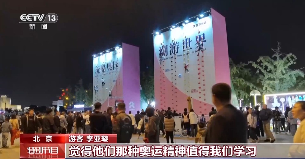 總臺記者 王勝東:在北京鳥巢和水立方之間,搭建起了一處攀巖體驗區(qū)?,F場排起了長長的隊伍,參與攀巖體驗的游客,小朋友占了大多數。