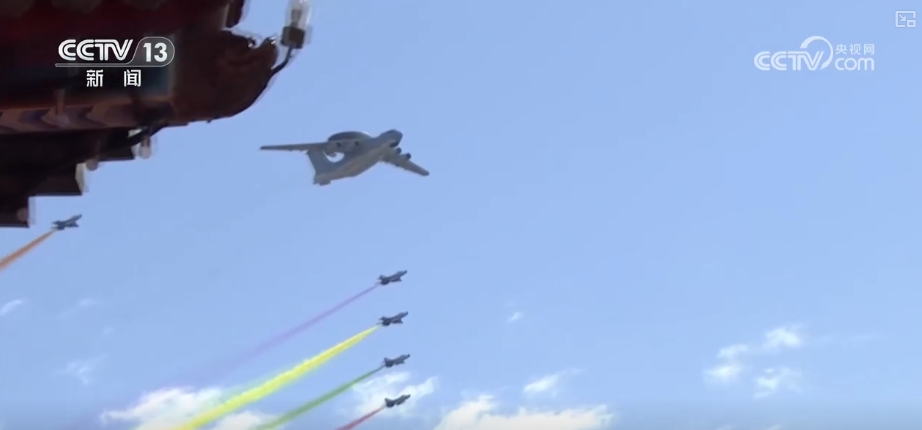 率先飛過天安門上空的是多機(jī)編隊(duì)的領(lǐng)隊(duì)梯隊(duì),帶隊(duì)長機(jī)是空警2000預(yù)警機(jī),“藍(lán)天嬌子”攜雷霆之勢(shì)展空中雄姿。