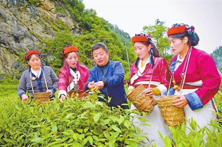 錯(cuò)那市勒布溝,安徽第七批援藏隊(duì)隊(duì)員裴含龍指導(dǎo)門(mén)巴族村民規(guī)范采摘茶葉。方晨介紹,根據(jù)山南的資源優(yōu)勢(shì),安徽援藏工作隊(duì)重點(diǎn)培育清潔能源產(chǎn)業(yè)、現(xiàn)代農(nóng)牧業(yè)、文化旅游業(yè)三大產(chǎn)業(yè)。