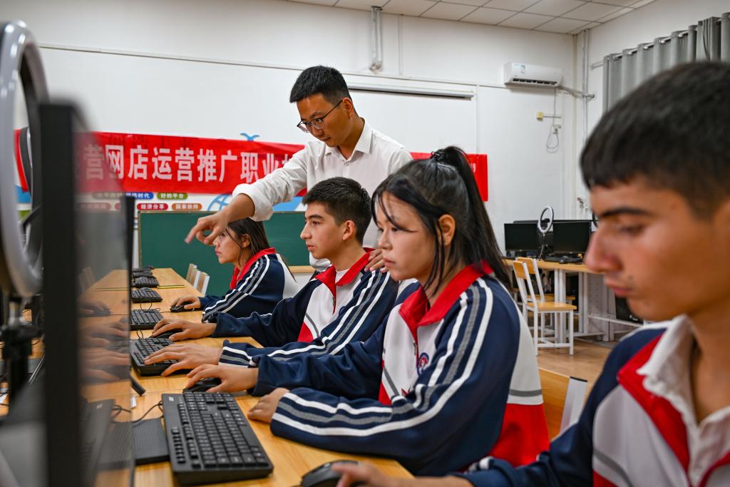 2024年9月10日,在阿拉爾職業(yè)技術(shù)學校,李斌傲在實訓室指導學生?!?5后”年輕教師李斌傲是第十一批浙江臺州到新疆阿拉爾職業(yè)技術(shù)學校援疆教師中的一員。2023年2月,李斌傲前往阿拉爾任教。一年半任期結(jié)束后,他沒有選擇回到臺州,而是申請留下來,在阿拉爾繼續(xù)播撒知識的種子。新華社記者 陳朔 攝