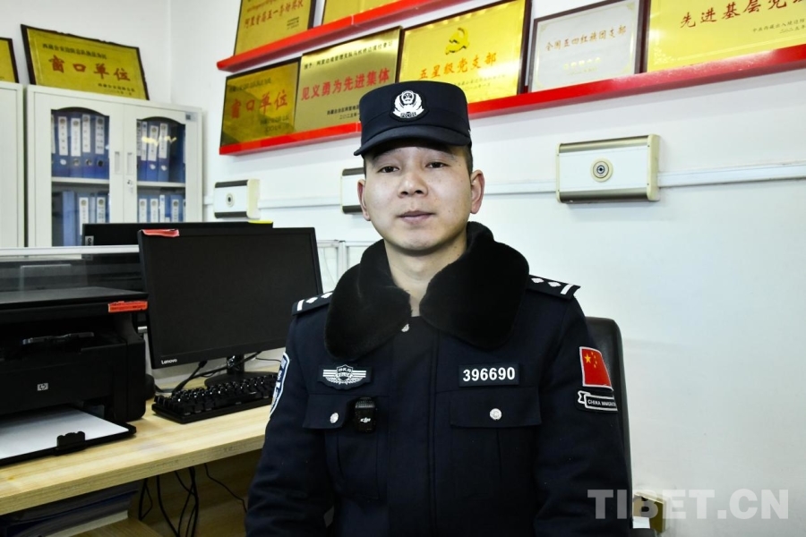 旦增平措,2002年出生,來自西藏林芝工布江達(dá)縣。他是站里最年輕的民警之一,臉上還帶著幾分稚氣,眼神卻透著堅(jiān)定。
