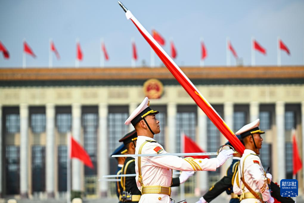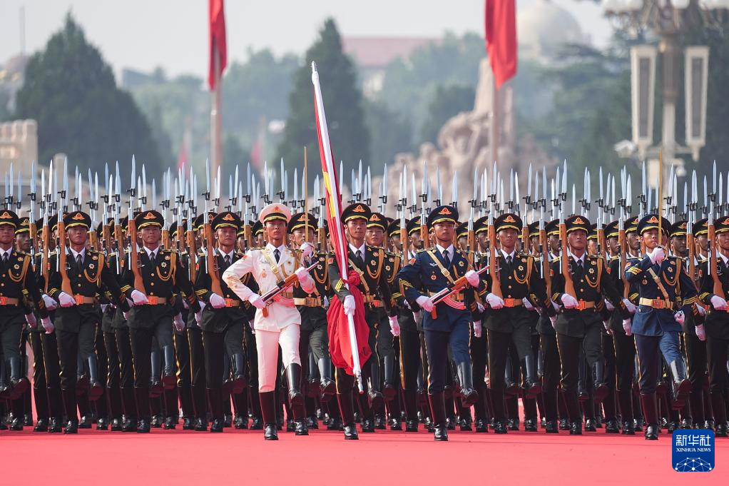 9月3日,紀(jì)念中國人民抗日戰(zhàn)爭(zhēng)暨世界反法西斯戰(zhàn)爭(zhēng)勝利80周年大會(huì)在北京隆重舉行。這是國旗護(hù)衛(wèi)隊(duì)列隊(duì)。