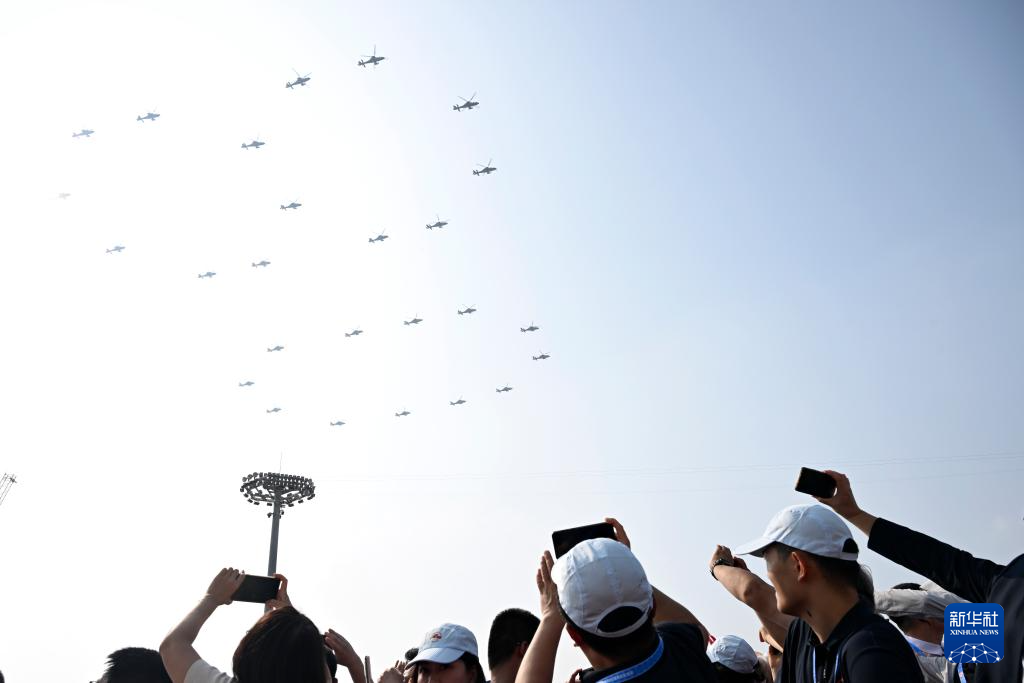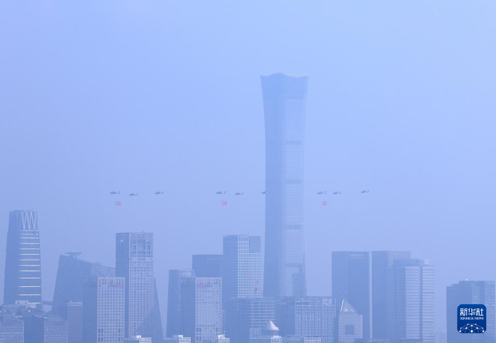 9月3日,紀(jì)念中國人民抗日戰(zhàn)爭(zhēng)暨世界反法西斯戰(zhàn)爭(zhēng)勝利80周年大會(huì)在北京隆重舉行。這是空中護(hù)旗梯隊(duì)。