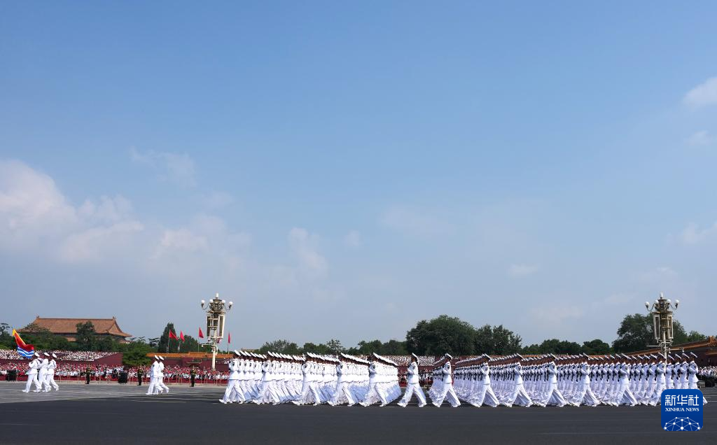 9月3日,紀(jì)念中國人民抗日戰(zhàn)爭(zhēng)暨世界反法西斯戰(zhàn)爭(zhēng)勝利80周年大會(huì)在北京隆重舉行。這是海軍方隊(duì)走過天安門廣場(chǎng)。