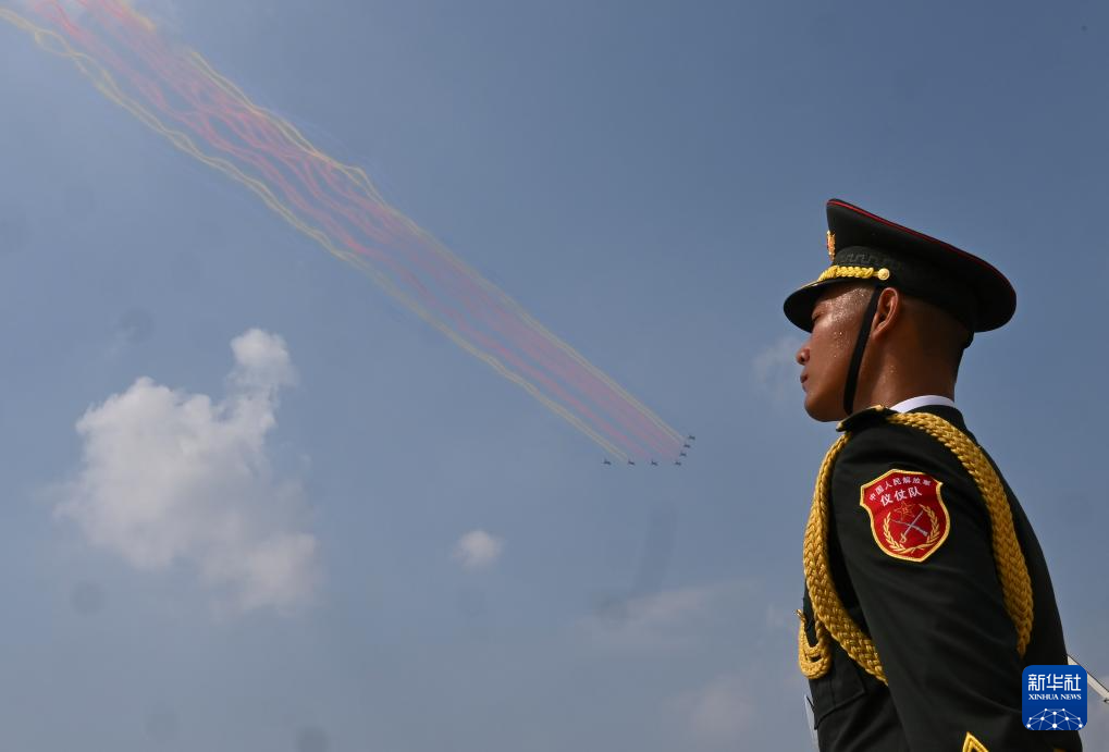 9月3日,紀念中國人民抗日戰(zhàn)爭暨世界反法西斯戰(zhàn)爭勝利80周年大會在北京隆重舉行。這是空中護旗梯隊。