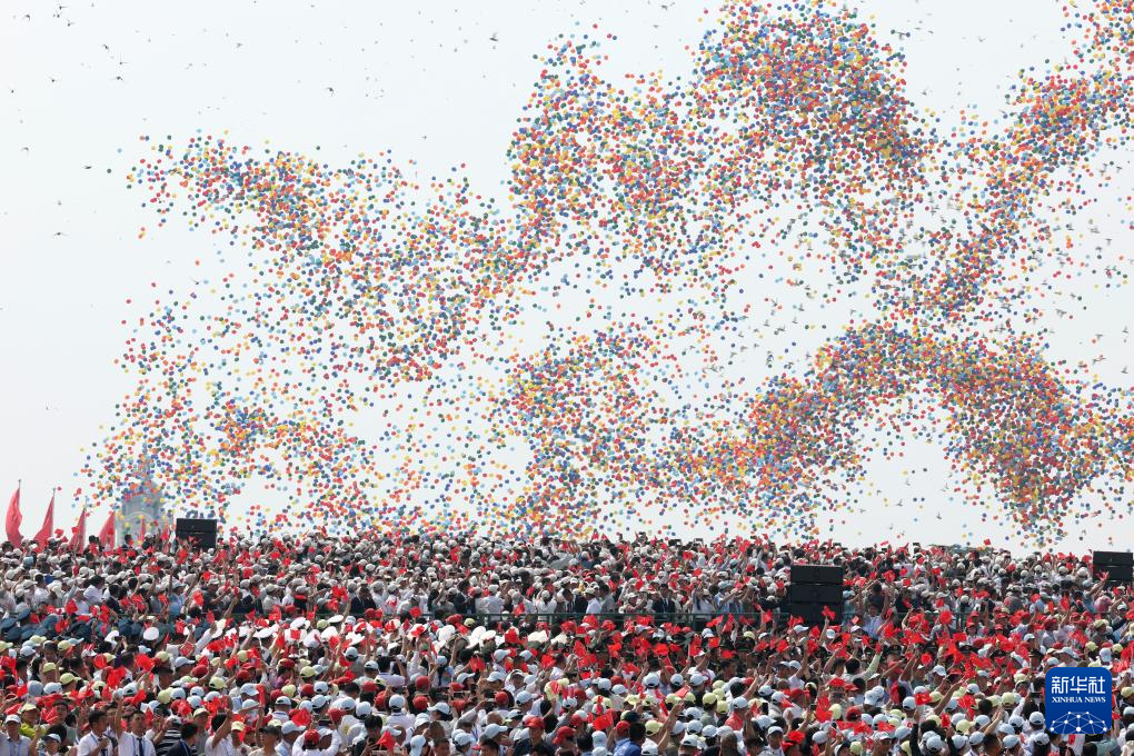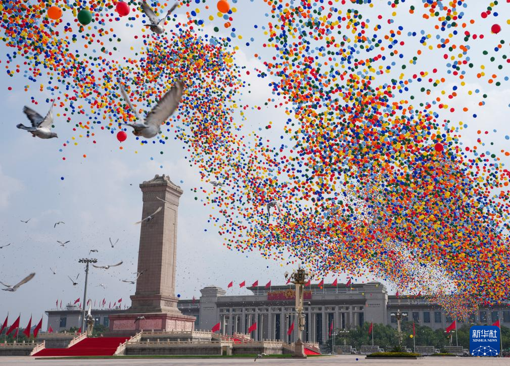 9月3日,紀念中國人民抗日戰(zhàn)爭暨世界反法西斯戰(zhàn)爭勝利80周年大會在北京隆重舉行。這是紀念大會現(xiàn)場放飛氣球。