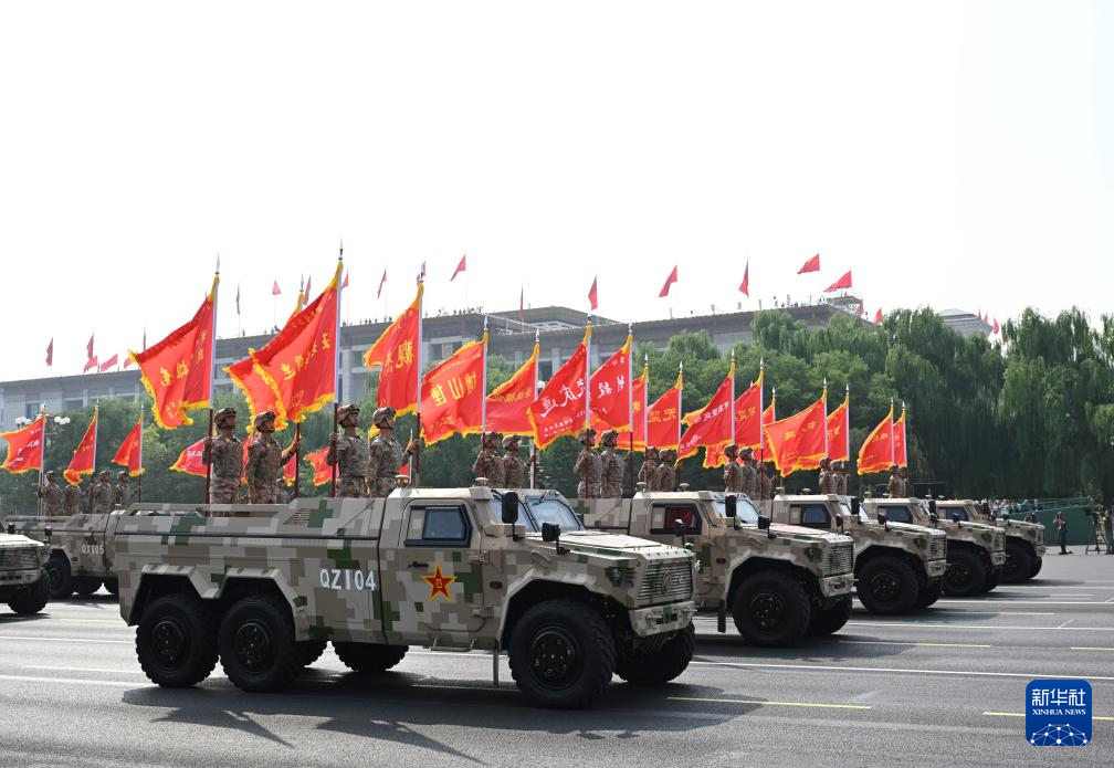 9月3日,紀念中國人民抗日戰(zhàn)爭暨世界反法西斯戰(zhàn)爭勝利80周年大會在北京隆重舉行。這是戰(zhàn)旗方隊接受檢閱。