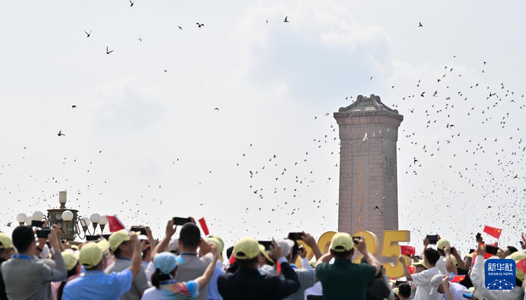 9月3日,紀念中國人民抗日戰(zhàn)爭暨世界反法西斯戰(zhàn)爭勝利80周年大會在北京隆重舉行。這是天安門廣場放飛鴿子。