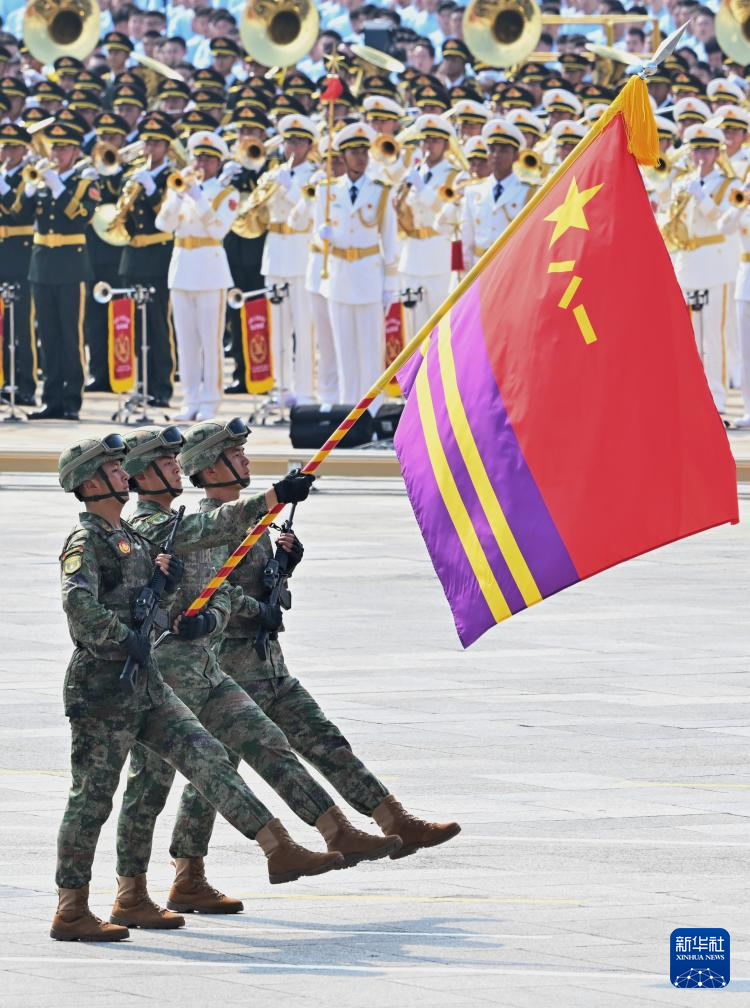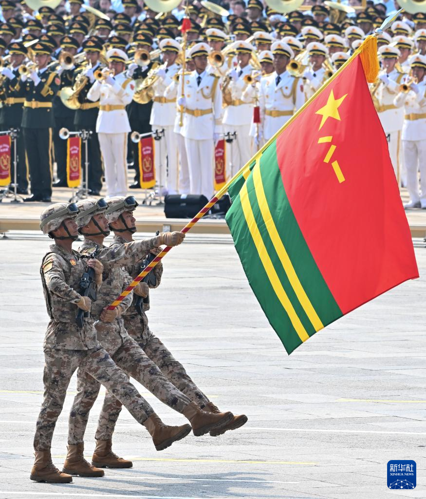 9月3日,紀(jì)念中國人民抗日戰(zhàn)爭暨世界反法西斯戰(zhàn)爭勝利80周年大會在北京隆重舉行。這是戰(zhàn)旗方隊接受檢閱。