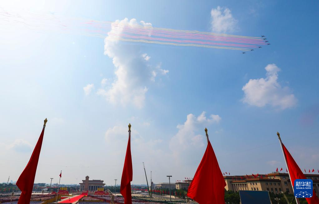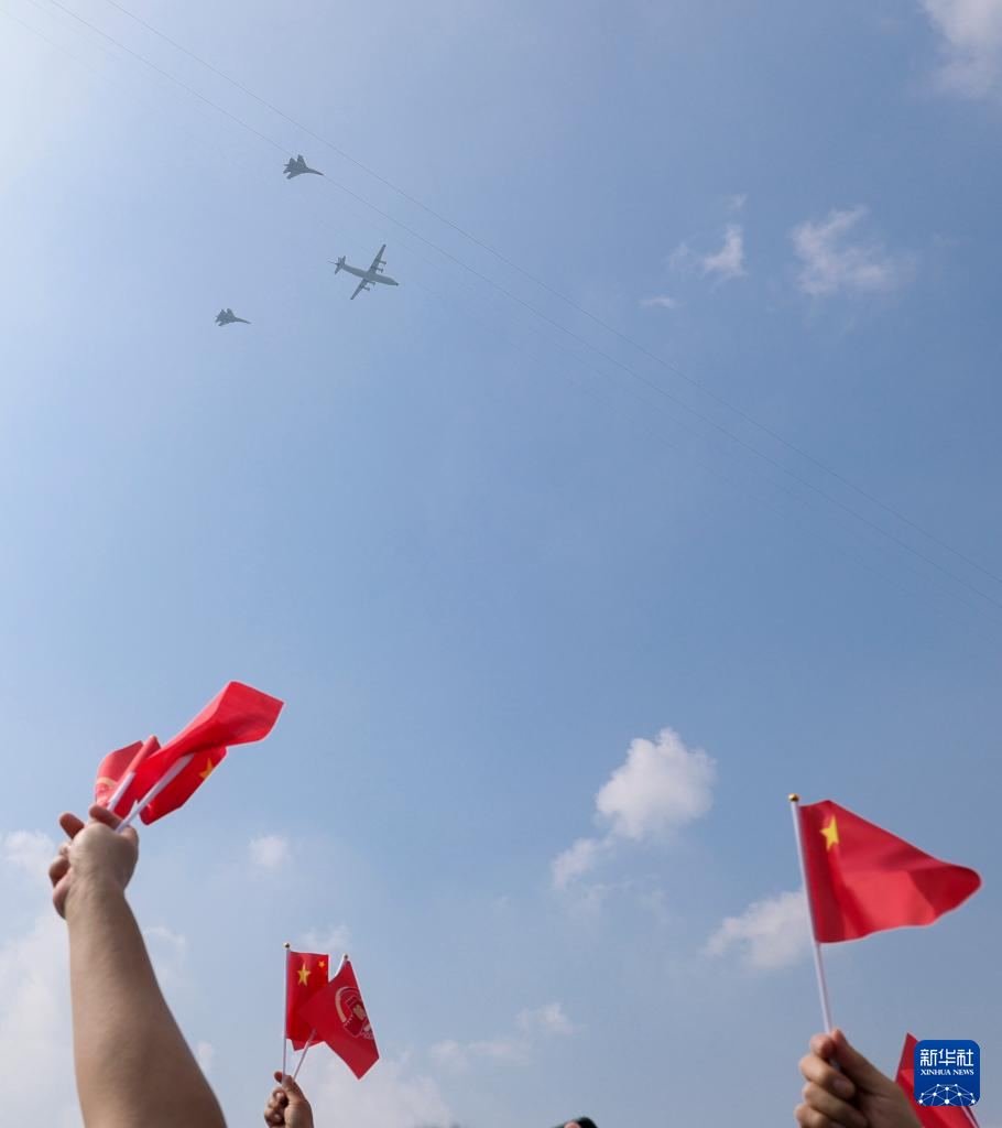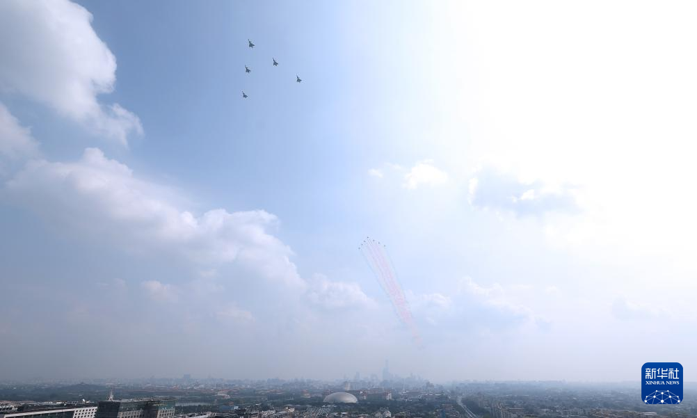 9月3日,紀(jì)念中國人民抗日戰(zhàn)爭暨世界反法西斯戰(zhàn)爭勝利80周年大會在北京隆重舉行。這是空中梯隊接受檢閱。