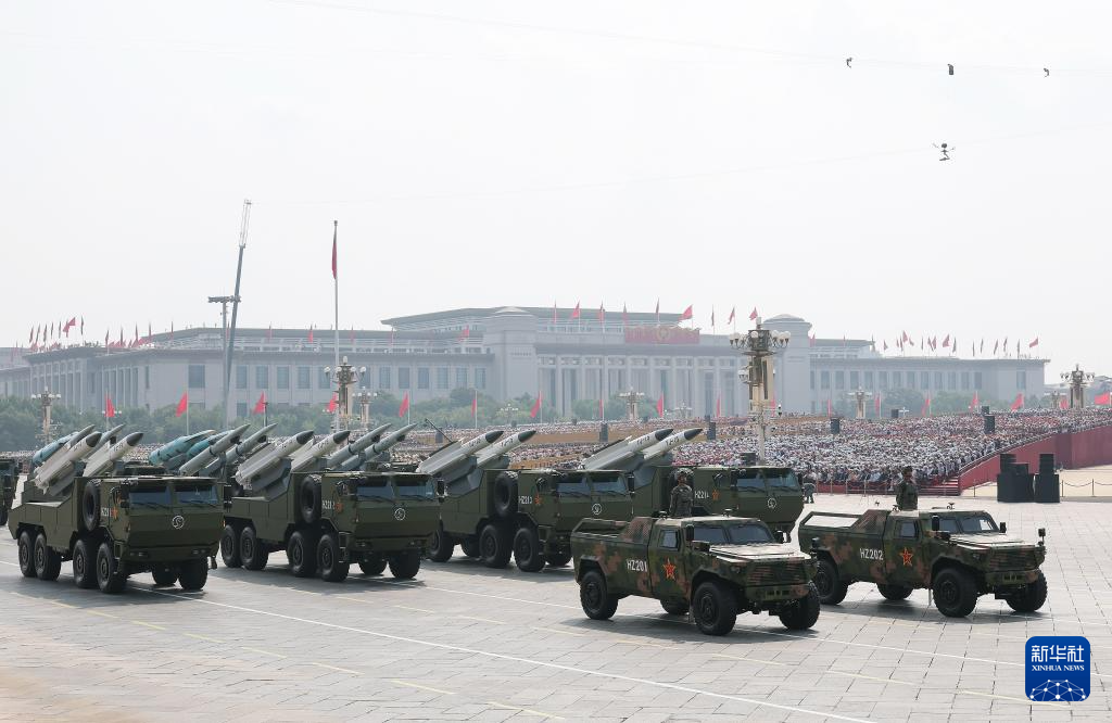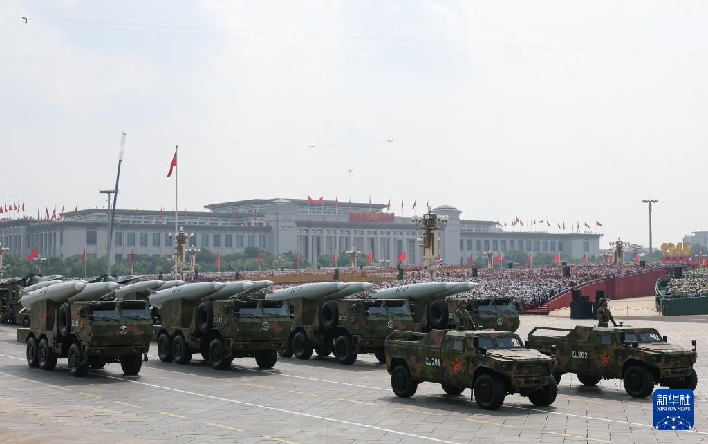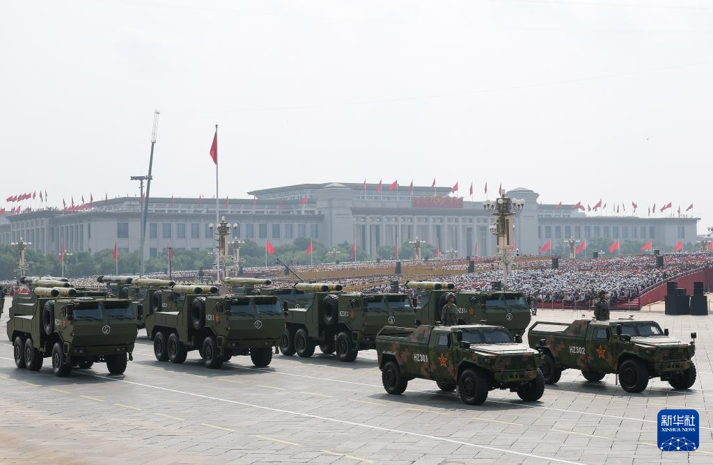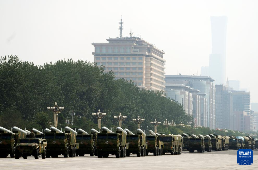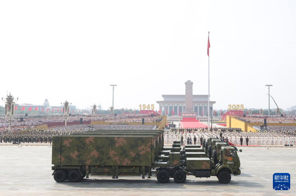 9月3日,紀(jì)念中國人民抗日戰(zhàn)爭暨世界反法西斯戰(zhàn)爭勝利80周年大會在北京隆重舉行。這是高超聲速導(dǎo)彈方隊接受檢閱。