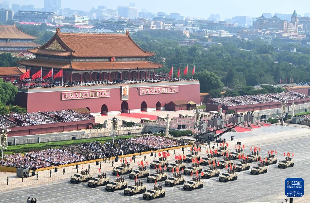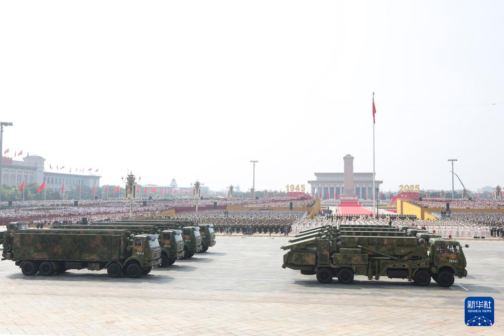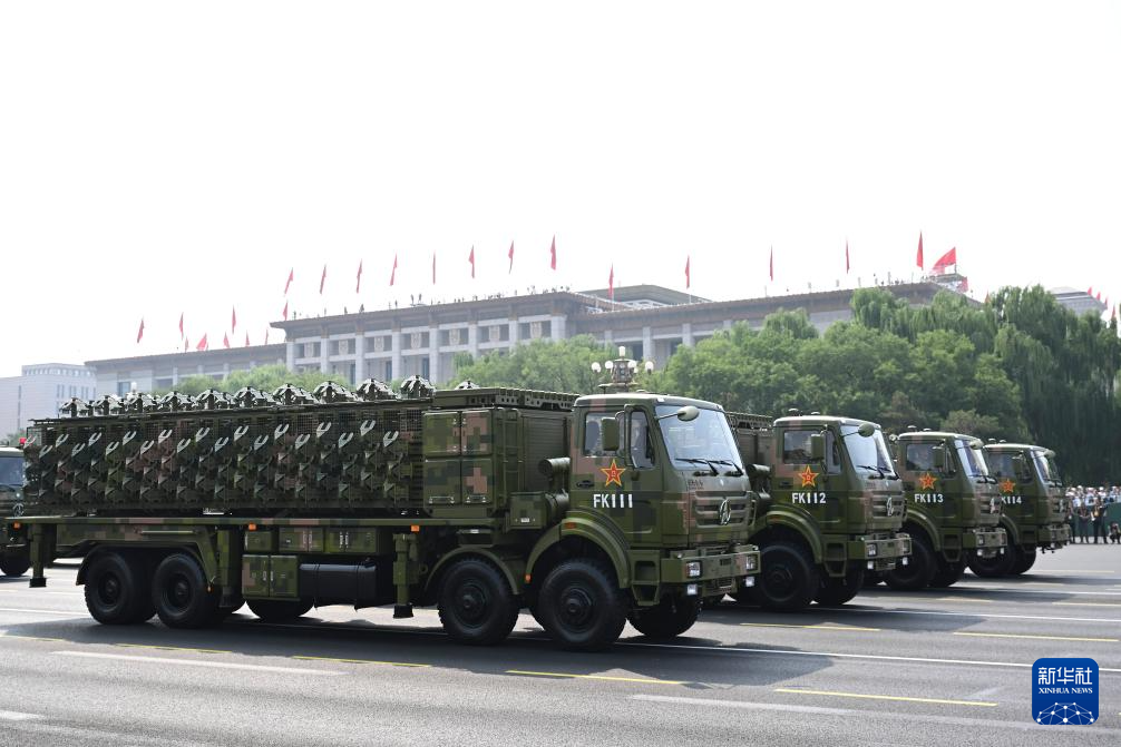9月3日,紀(jì)念中國人民抗日戰(zhàn)爭暨世界反法西斯戰(zhàn)爭勝利80周年大會在北京隆重舉行。這是遠(yuǎn)程火炮方隊接受檢閱。