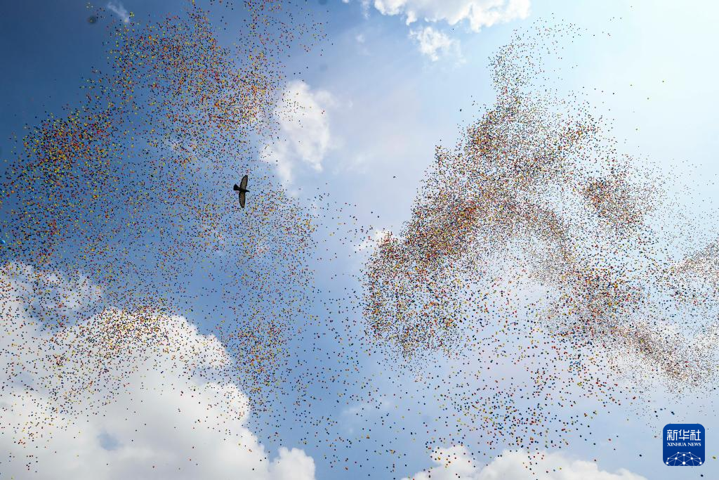 9月3日,紀(jì)念中國人民抗日戰(zhàn)爭暨世界反法西斯戰(zhàn)爭勝利80周年大會在北京隆重舉行。這是紀(jì)念大會現(xiàn)場放飛氣球。
