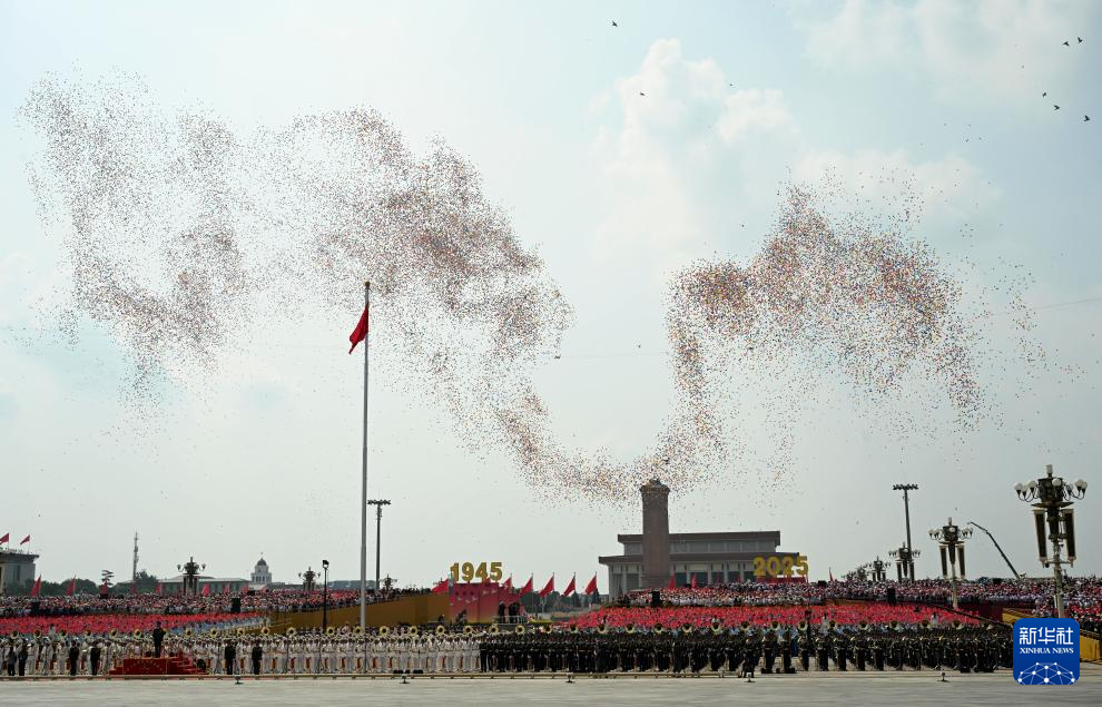 9月3日,紀(jì)念中國人民抗日戰(zhàn)爭暨世界反法西斯戰(zhàn)爭勝利80周年大會在北京隆重舉行。這是紀(jì)念大會現(xiàn)場放飛鴿子。