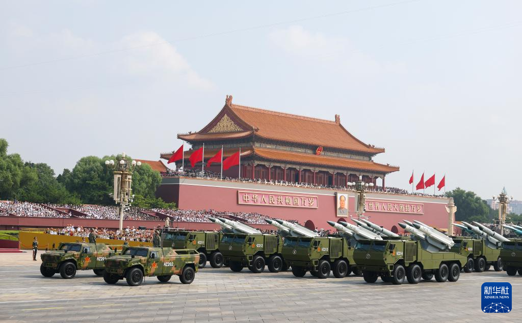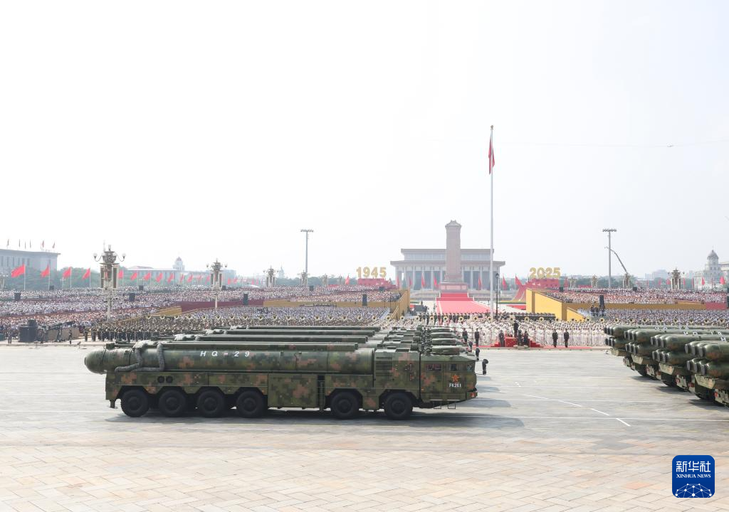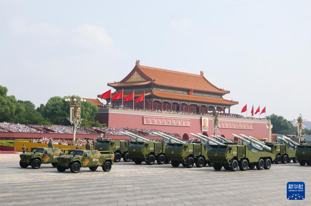 9月3日,紀(jì)念中國(guó)人民抗日戰(zhàn)爭(zhēng)暨世界反法西斯戰(zhàn)爭(zhēng)勝利80周年大會(huì)在北京隆重舉行。這是核導(dǎo)彈第二方隊(duì)通過(guò)天安門廣場(chǎng)。