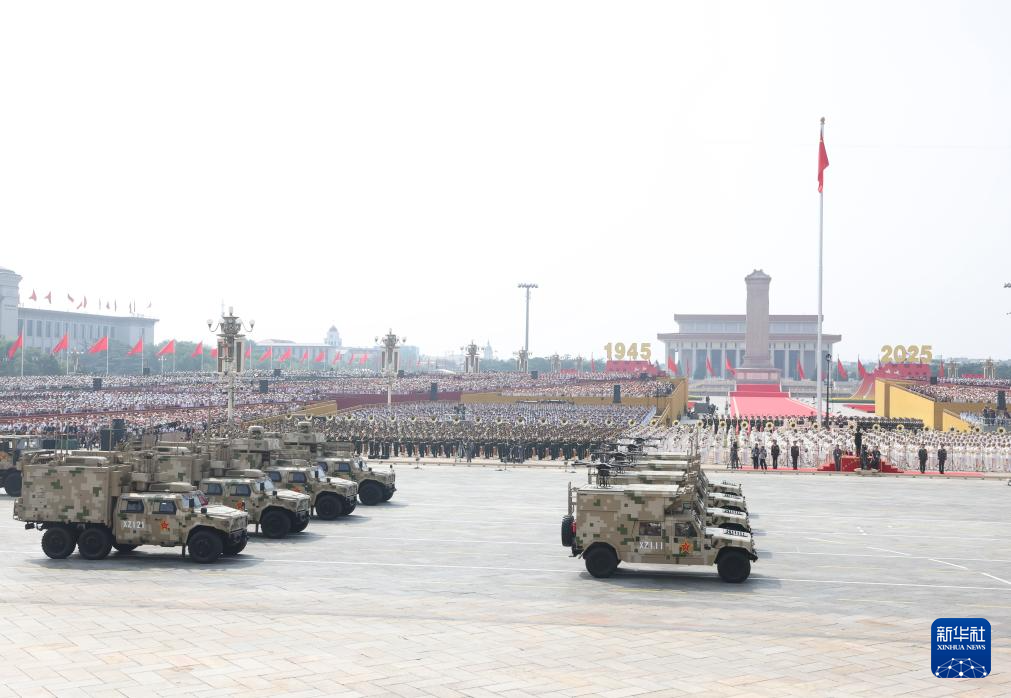 9月3日,紀(jì)念中國(guó)人民抗日戰(zhàn)爭(zhēng)暨世界反法西斯戰(zhàn)爭(zhēng)勝利80周年大會(huì)在北京隆重舉行。這是陸上無(wú)人作戰(zhàn)方隊(duì)通過(guò)天安門廣場(chǎng)。