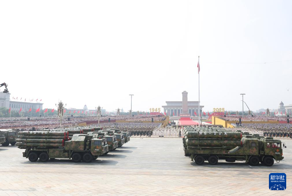 9月3日,紀(jì)念中國(guó)人民抗日戰(zhàn)爭(zhēng)暨世界反法西斯戰(zhàn)爭(zhēng)勝利80周年大會(huì)在北京隆重舉行。這是遠(yuǎn)程火炮方隊(duì)接受檢閱。