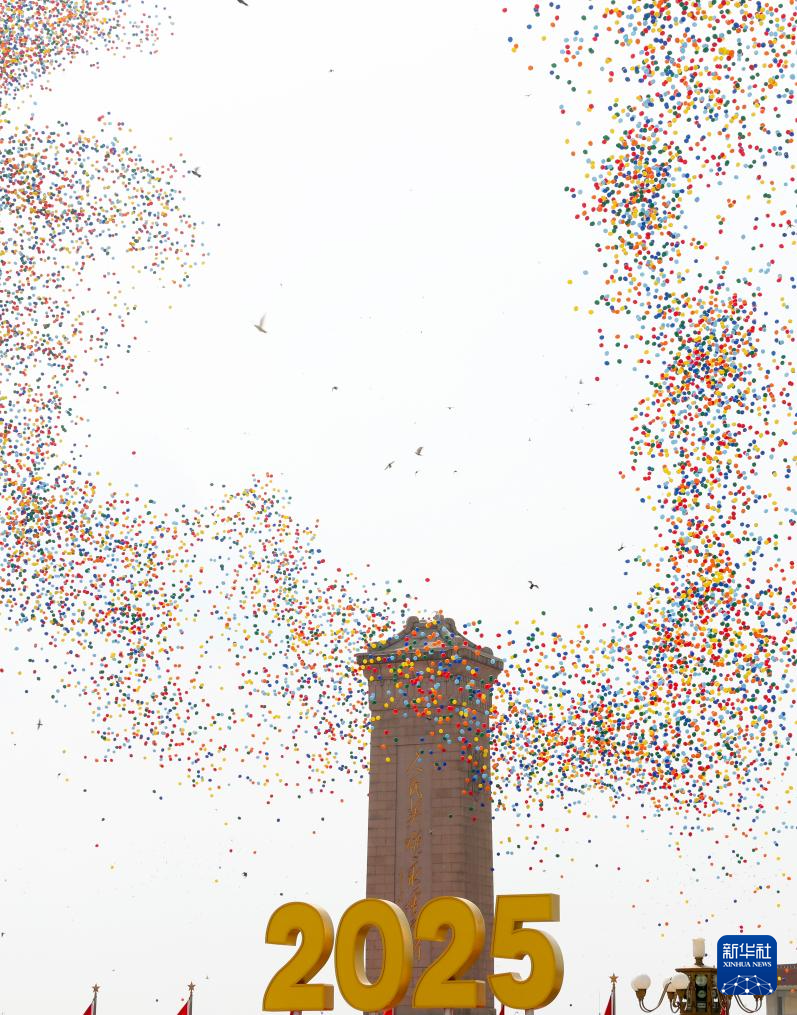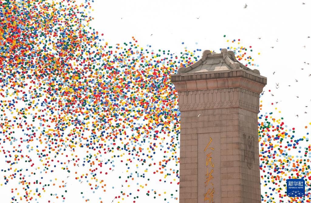 9月3日,紀念中國人民抗日戰(zhàn)爭暨世界反法西斯戰(zhàn)爭勝利80周年大會在北京隆重舉行。這是紀念大會現(xiàn)場放飛氣球。