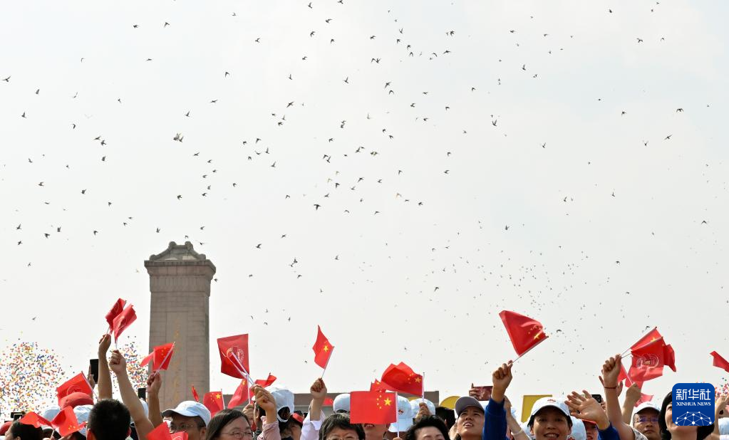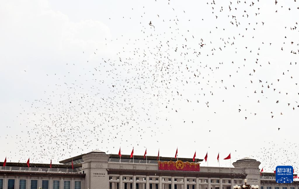 9月3日,紀念中國人民抗日戰(zhàn)爭暨世界反法西斯戰(zhàn)爭勝利80周年大會在北京隆重舉行。這是紀念大會現(xiàn)場放飛鴿子。