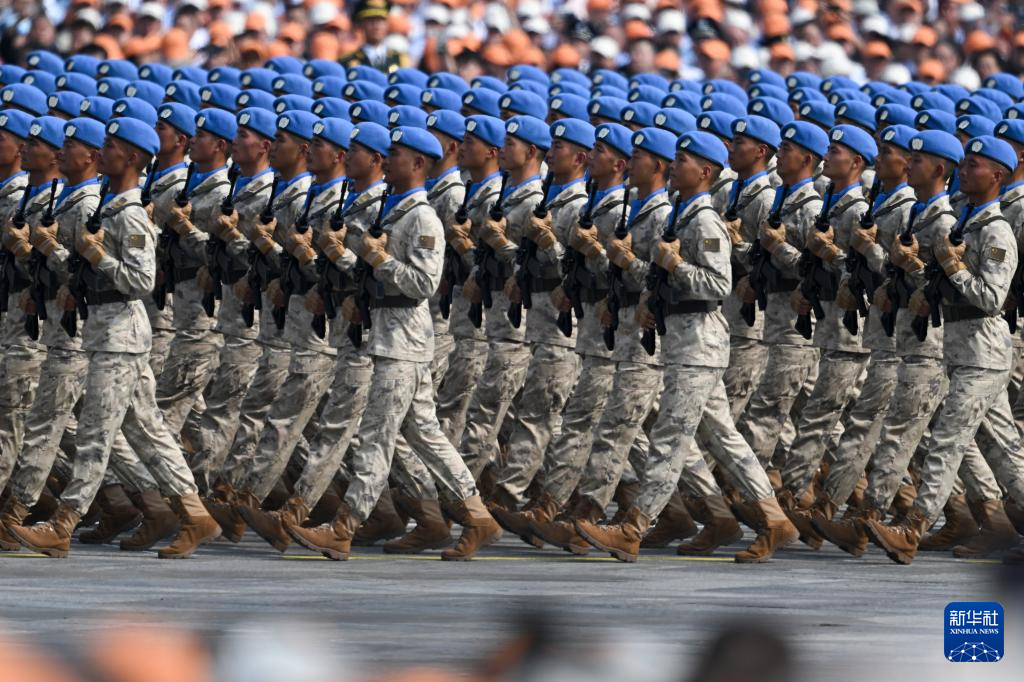 9月3日,紀念中國人民抗日戰(zhàn)爭暨世界反法西斯戰(zhàn)爭勝利80周年大會在北京隆重舉行。這是維和部隊方隊接受檢閱。