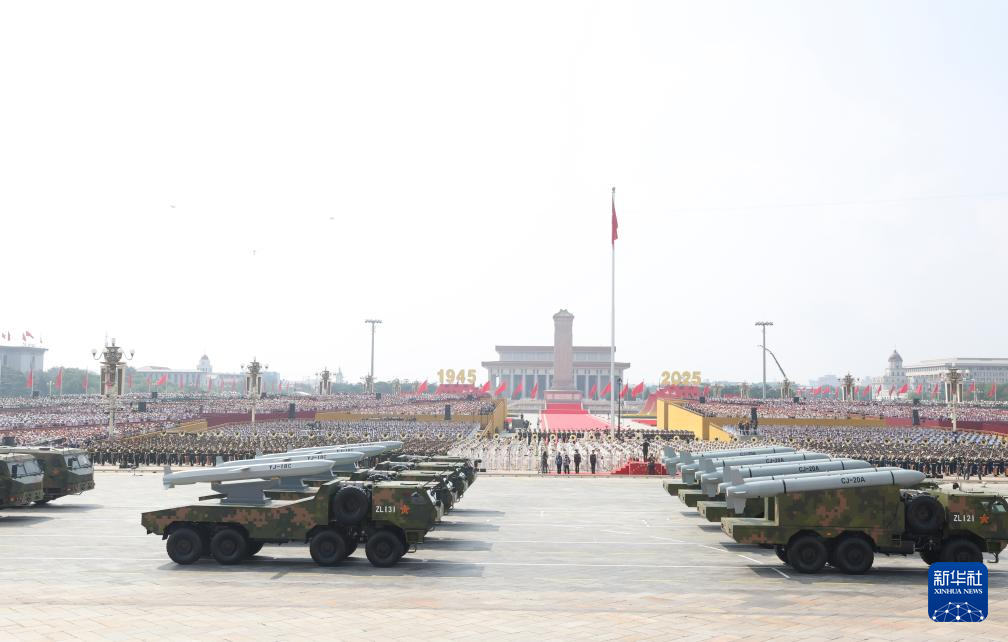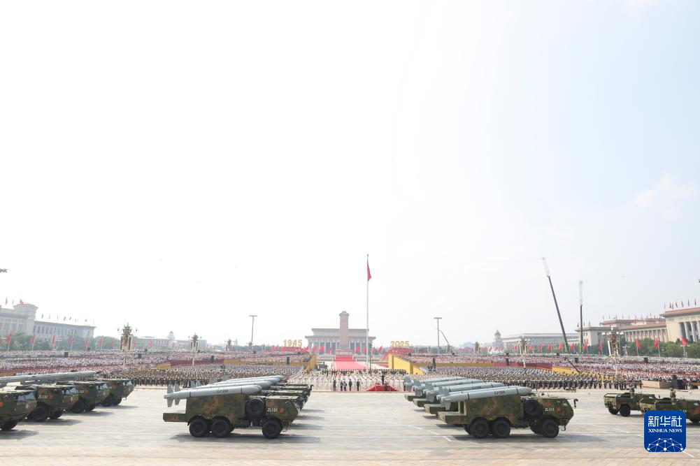 9月3日,紀念中國人民抗日戰(zhàn)爭暨世界反法西斯戰(zhàn)爭勝利80周年大會在北京隆重舉行。這是高超聲速導彈方隊接受檢閱。