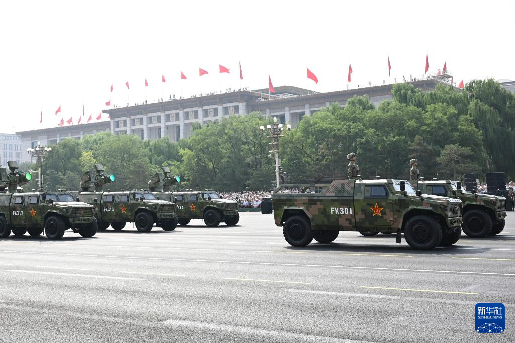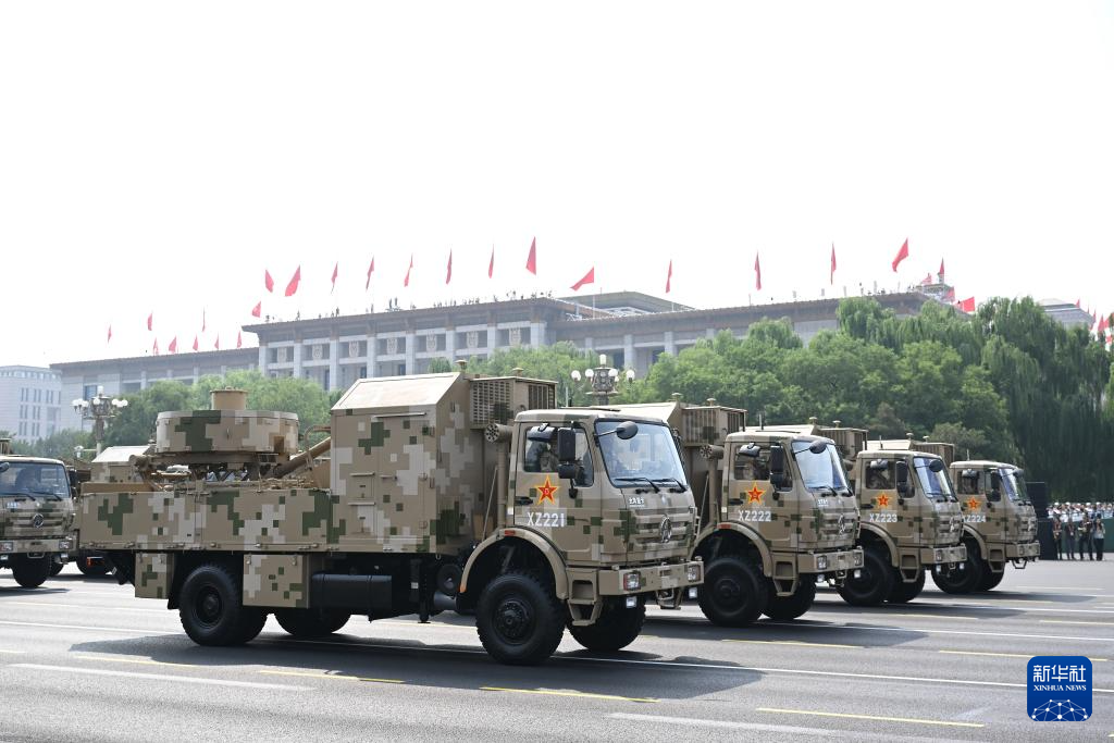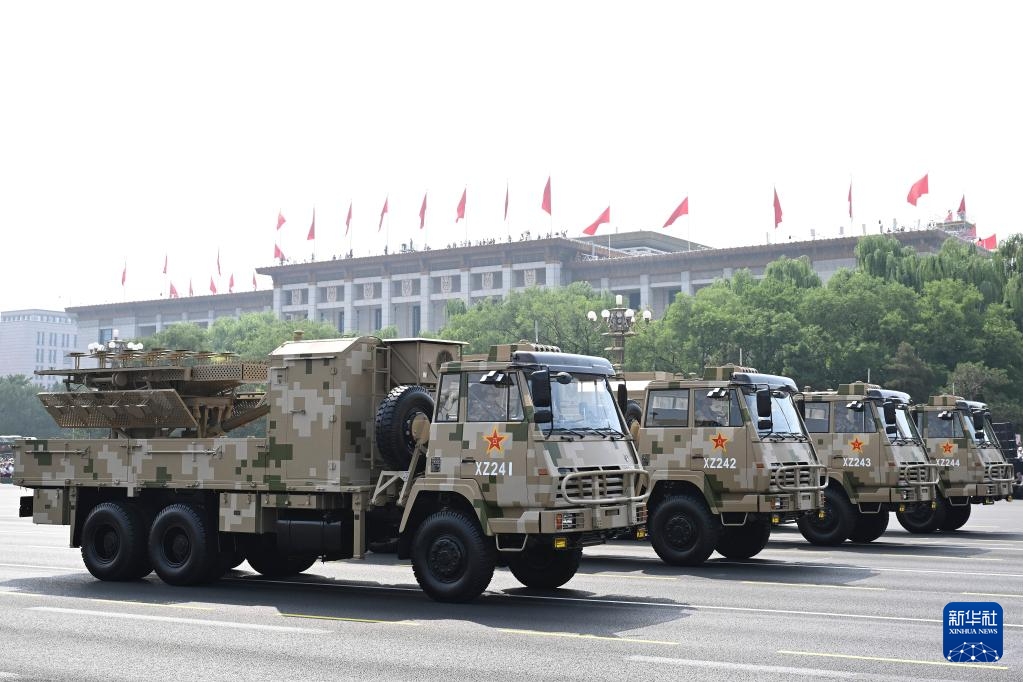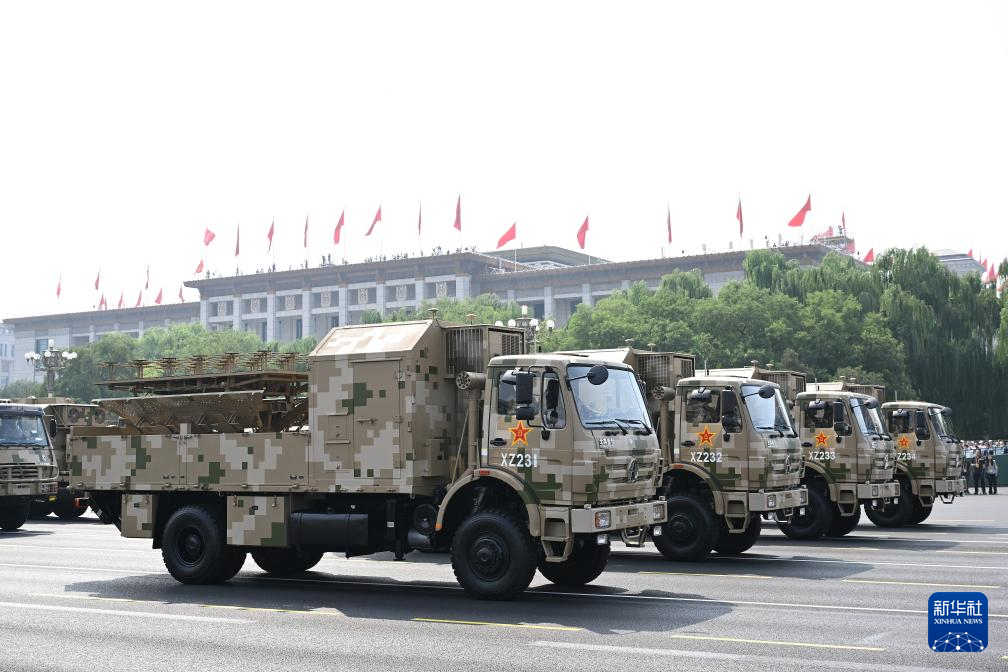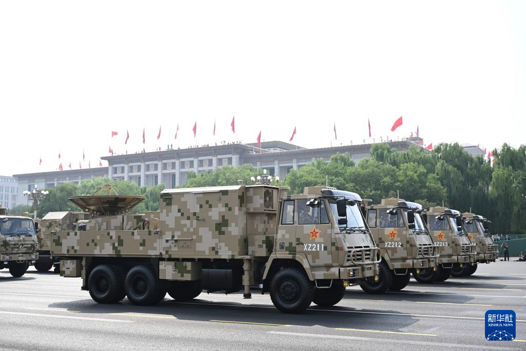 9月3日,紀念中國人民抗日戰(zhàn)爭暨世界反法西斯戰(zhàn)爭勝利80周年大會在北京隆重舉行。這是電子對抗方隊接受檢閱。