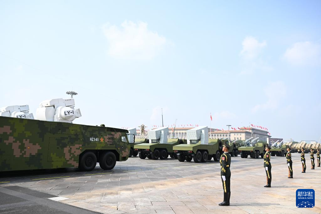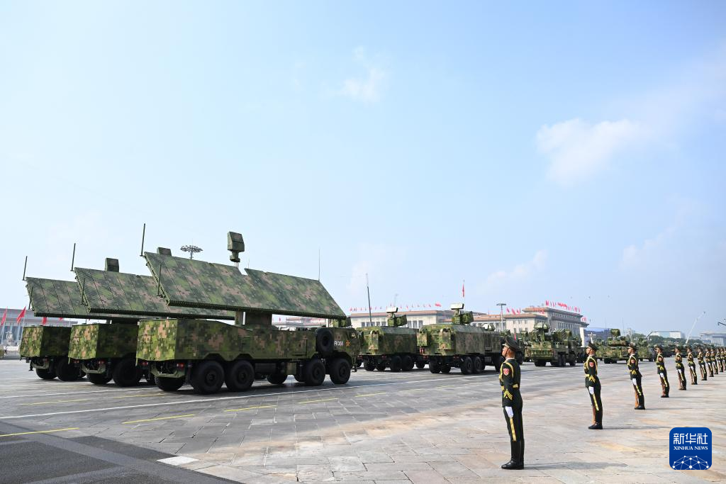 9月3日,紀念中國人民抗日戰(zhàn)爭暨世界反法西斯戰(zhàn)爭勝利80周年大會在北京隆重舉行。這是艦載防空武器方隊接受檢閱。