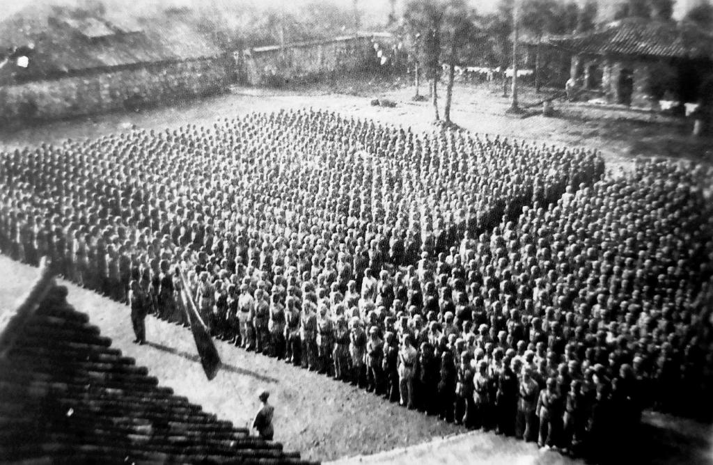 1939年,南僑機工在昆明潘家灣訓練所接受軍事訓練(資料照片)。 新華社發(fā)