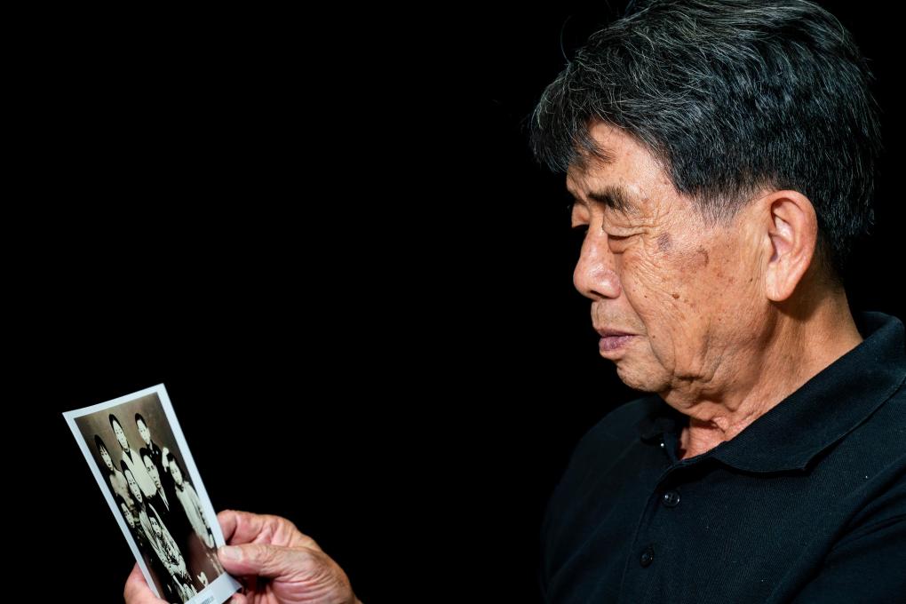 2025年7月17日,張云鵬端詳兒時與父母、兄弟姐妹拍攝的全家福。
