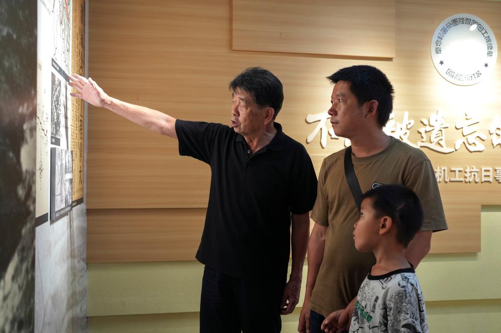 2025年7月18日,在昆明市博物館南僑機工分館,張云鵬(左)為參觀的游客講述南僑機工的故事。