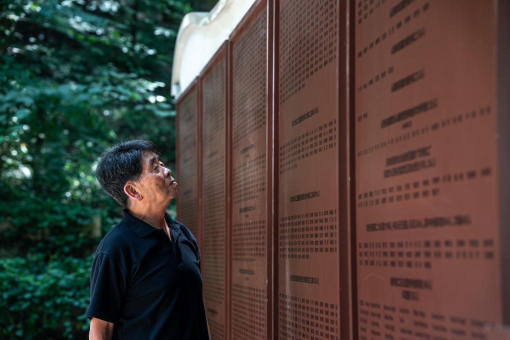2025年7月18日,在昆明市西山森林公園,張云鵬凝視南僑機工英名錄墻上父親的名字。