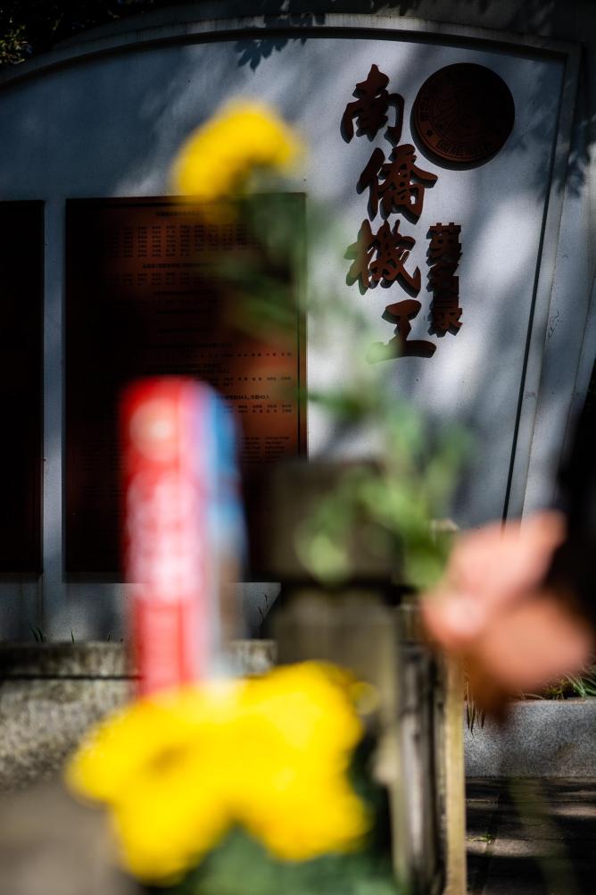 2022年11月2日,民眾在昆明西山的南洋華僑機工抗日紀念碑前獻花。 新華社記者 江文耀 攝
