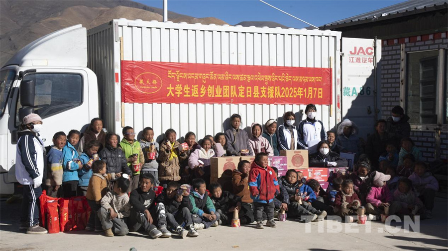 圖為拉薩市當(dāng)雄縣烏瑪塘鄉(xiāng)巴嘎村“00后”返鄉(xiāng)創(chuàng)業(yè)大學(xué)生自發(fā)赴定日縣捐贈物資(攝于2025年1月8日) 攝影:趙振宇