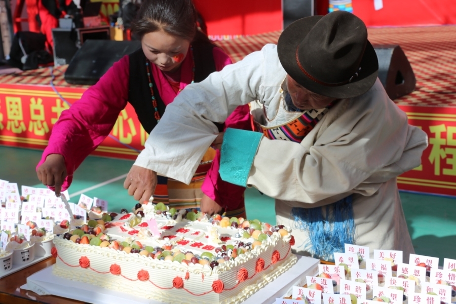 文藝演出環(huán)節(jié)精彩紛呈。定結(jié)縣藝術(shù)團(tuán)與郭加鄉(xiāng)群眾共同奉獻(xiàn)了融合歌舞、小品的原創(chuàng)節(jié)目,生動(dòng)展現(xiàn)災(zāi)后重建的豐碩成果與群眾昂揚(yáng)向上的精神風(fēng)貌?;顒?dòng)中,受災(zāi)群眾代表與村干部先后登臺(tái),真情講述一年來(lái)家園重建、生活改善的點(diǎn)點(diǎn)滴滴,言語(yǔ)間充滿感恩與希望。隨后,切蛋糕活動(dòng)將氣氛推向高潮,群眾代表與干部共同切開(kāi)象征甜蜜新生活的蛋糕,并由志愿者分發(fā)給在場(chǎng)每一位參與者,共享溫暖與喜悅。