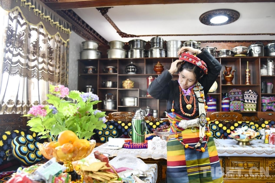 圖為薩迦縣雄麥鄉(xiāng)扎果村村民佩戴起為新年所準備的新首飾(攝于2026年1月6日) 攝影:趙振宇