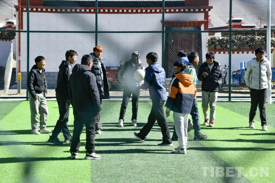 圖為在定日縣長(zhǎng)所鄉(xiāng)森嘎村的足球場(chǎng)上,村中的孩子們正在組織足球比賽。攝影:趙振宇