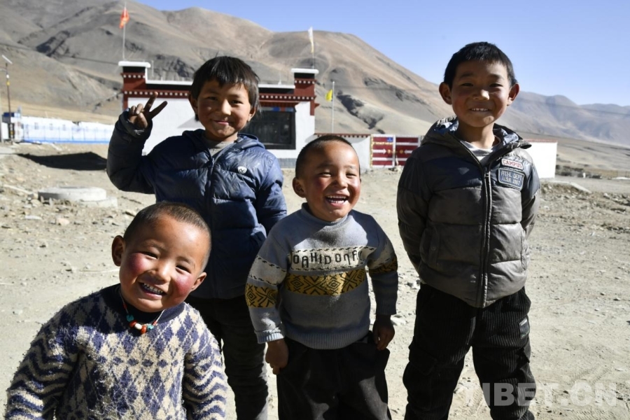 圖為定日縣長(zhǎng)所鄉(xiāng)古榮村的小朋友們?cè)谛戮忧翱鞓?lè)合影。攝影:趙振宇