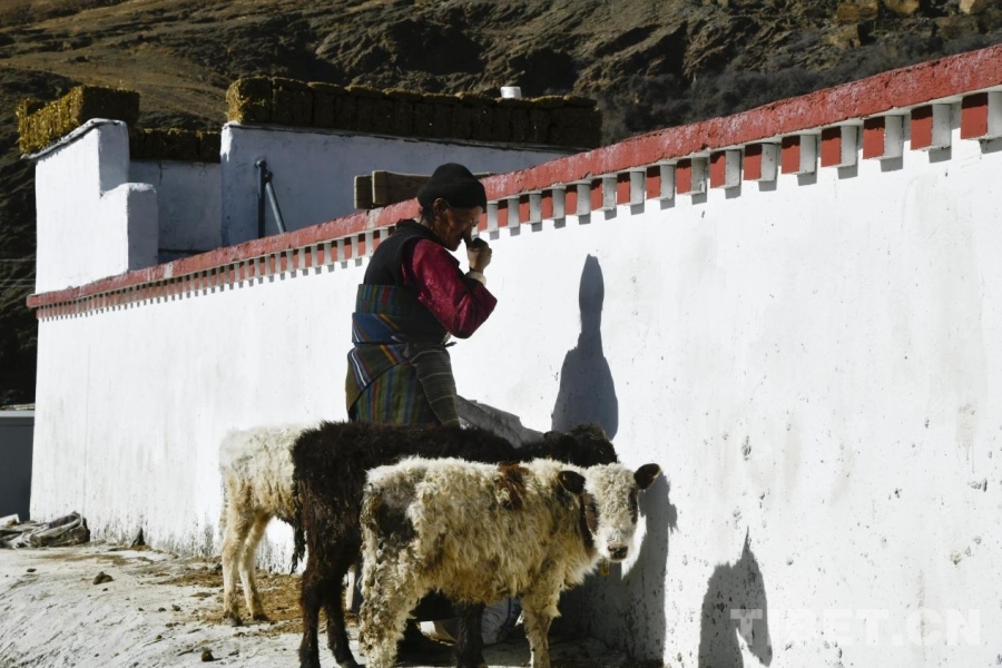 圖為在定日縣長(zhǎng)所鄉(xiāng)古榮村,村民正在為小牛梳理毛發(fā)。攝影:趙振宇